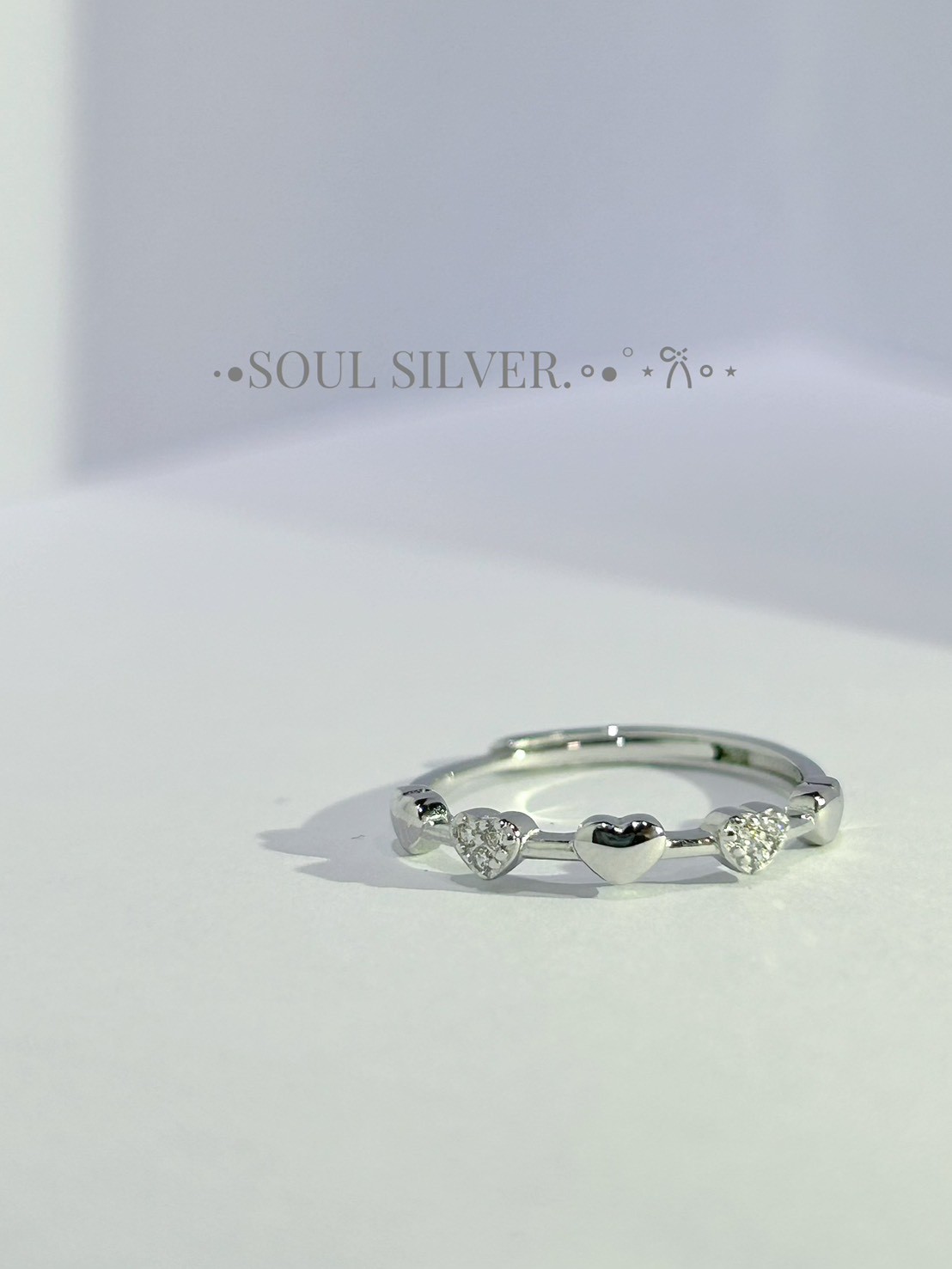 品名:純銀 五連心素面微鑲戒