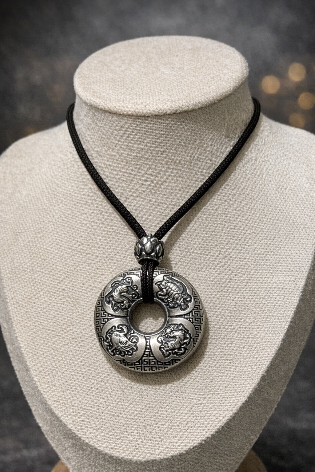 品名:純銀 綁繩硫化四聖獸平安扣墜